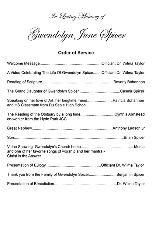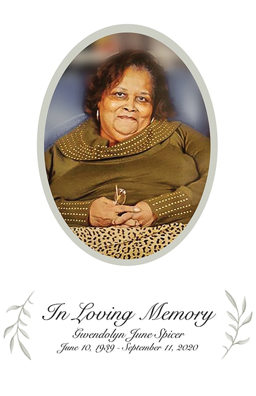 Gwendolyn Spicer Memorial Card