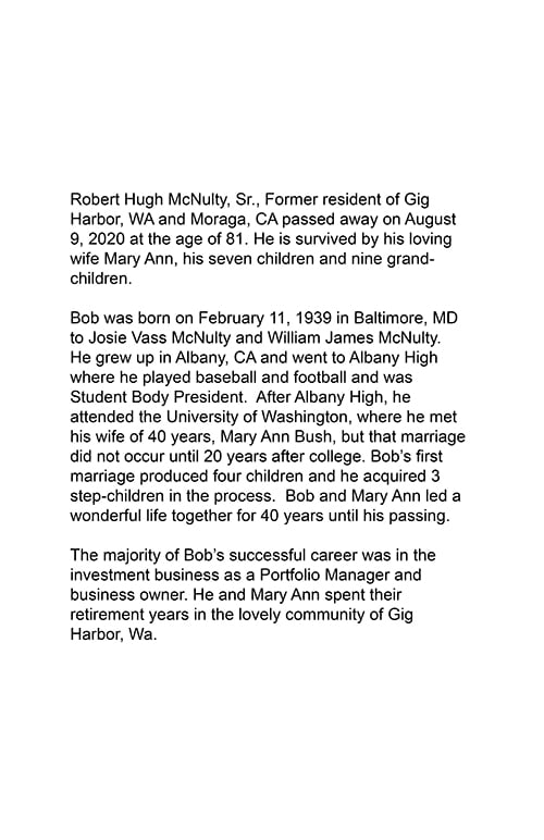 Robert McNulty Memorial Card