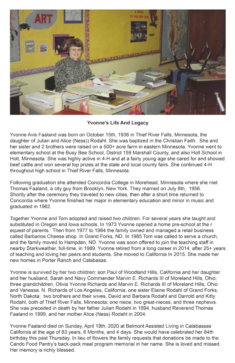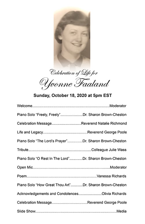 Yvonne Faaland Memorial Card